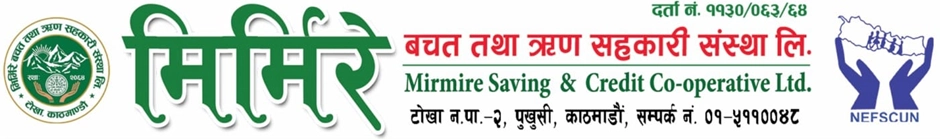 Mirmire SACCOS, established by 35 youth with a strong feeling of a mutual help has been going a long way respecting co-operative value ‘Mass Participation’. Thank you for the opportunity to serve as Manager of Mirmire Savings and Credit Cooperative Society Ltd. It is an honor and privilege to serve as a manager in Mirmire Saccos which has glorious history in promotion and development of cooperative movement in Tokha Municipality to improve the lives of people through a series of financial and non-financial services. The operation of the company is fully computerized from the time it stated its operation.